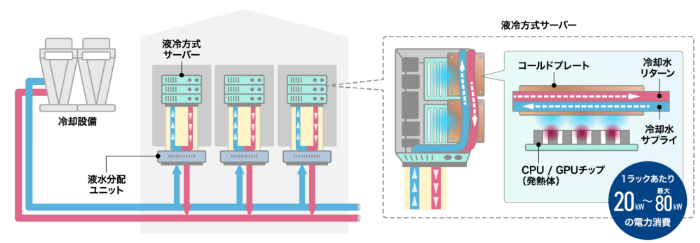 | 冷却方法 | 空冷空調・水冷空調 | 液浸冷却・リアドアクーリングなど次世代方式 |
