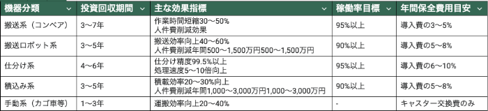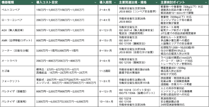 これらのマテハン機器を適切に導入・活用することで、物流および製造現場の作業効率化、省人化、安全性の向上が期待できます。