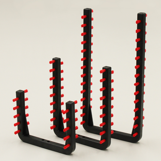 厚みや形状が異なる製品も、ブラシの柔軟性を活かしてしっかり保持。