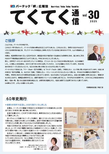 このたび、広報誌「バーテックてくてく通信 Vol.30」を発行いたしました。