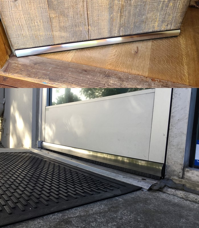 また、ドアの下部のわずかな隙間にも注意が必要です。指一本ほどの隙間があればネズミは通り抜けられるため、扉と床の間の隙間は5mm以下に抑える必要があります。このようなドアの隙間からの侵入を阻止するにはラットシールドが有効です。